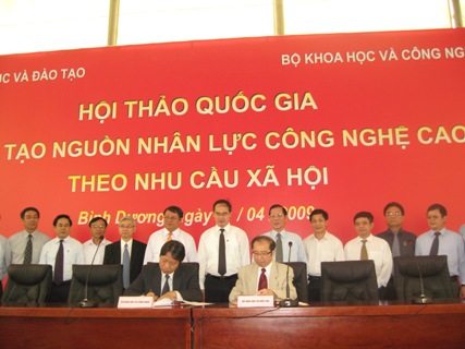 从上面实际情况来看,教育培训部副部长彭进龙认为,培训人力资源要集中于四个行业,包括:信息技术,生物工艺学,新材料技术,自动化工艺。然而,他还说不要对教育培训进行大规模投资,因为企业、试验处、研究中心的专家比例较少,只占5-10%。应按“核仁”模型进行。对于教育培训部副部长彭进龙的意见,科技部副部长Nguyen Van Lang表示同意。此外,他还对2020年人力资源需求提出预测,并强调要集中于质与量的两个指标。在四个优先行业要集中于生物工艺学,新材料,和自动化,因为这就是未来创造优势的行业。