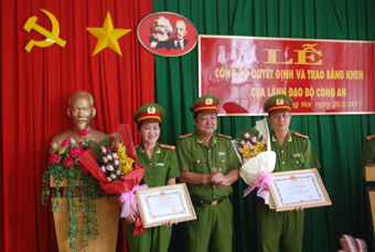 此前,于5月24日上午,省公安局副局长武文创大校已前来统一县光中乡,对当地4名个人授予省公安局的奖状,那则是该乡公安派出所所长黄文纲上尉,副所长梅玉民以及住在2号阮惠村的邓诚泰和邓诚海两名公民,已英勇追捕在20号国道挡车抢劫的匪徒。