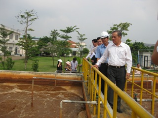监察团在 Ulhwa公司(Loteco工业区)检查其废水处理系统