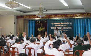 省人民议会代表对提案给予通过决定进行表决