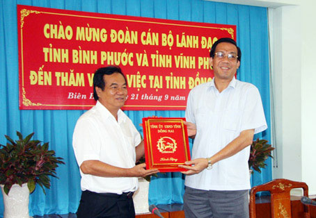 省委书记陈庭成对平福及永福两省的代表赠送我省象征礼品