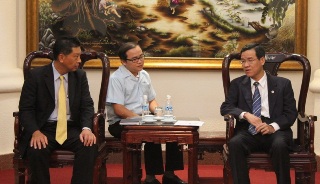 省人民委员会主席丁国泰礼仪接待驻胡志明市日本商业协会主席