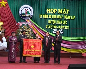 在典礼上,省委常设副书记黎宏方已经对新富县的干部和人民授予由同奈省人委会值该县20周年建设及发展纪念颁发的贺幛,并且给30、40和50党龄的各名党员佩挂徽章。值此,过去20年来在新富县建立和长大过程中做出许多贡献的集体和个人也获得颁奖。
