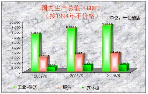 按1994年不变价格的国内生产总值(十亿越盾): |