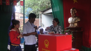 至5月22日的11时止,据丁公众先生——SongTrau乡1号选举地选举小组的一名成员告知,该地选民投票率至目前为止已达近80%。据他所称,全村共有3487名选民,其中大多数选民都是暂住的,此外还有260名选民是Vinatex职业大专学校的学生。
