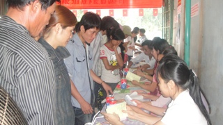 至于三号鹿壕乡清化村邑,此地到处都能感觉到选举盛会的气氛。村里的老百姓从一大早已踊跃去投票。该村选举小组代表告知,全村共有1961名选民,其中暂住的是625人。在选举日举行之前,村内所有街区的区长均已向全村老百姓通知选举工作。据黄德平选民——鹿壕工业区VPIC公司的一名员工告知,今日虽然公司要求加班,但知晓选举的信息之后,我已趁早去投票,然后才上班。