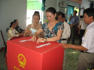 刚刚投完票,胡志明市技术师范大学的阮氏翠玉(22岁)透露:“这是我第一次去投票,心里觉得又是紧张,又是兴奋。我希望被选取的各位代表将会致力发挥其智慧、品德去服务国家,并且对我们年轻一代给予更多关心,例如创造更多操场,更切合实际的活动,改善教育环境,为青年人创造就业机会...”