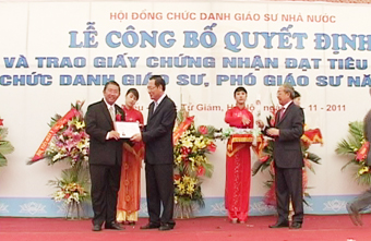 11月12日上午,在河内国子监文庙,国家教授职称委员会公布了2011年教授、副教授职称合格名单之决定并举行了教授、副教授证书颁发仪式。其中,同奈省科技厅厅长范文创(Pham Van Sang)博士被授予副教授职称。