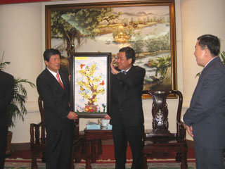 省人委会副主席丁国泰对Gyeongnam 高级干部团赠予纪念礼物